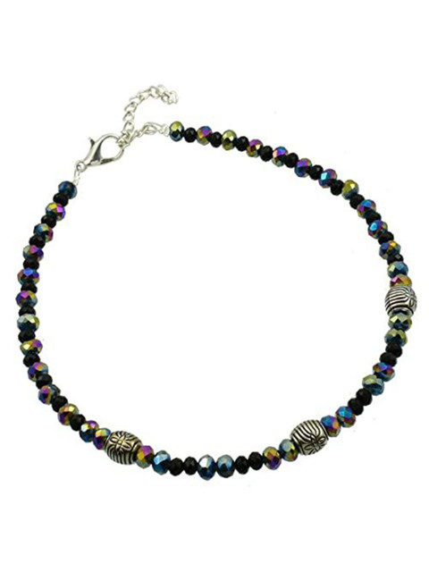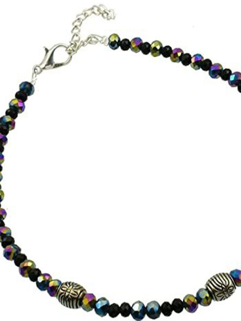 Set of 2 beaded anklets in black and silver, has an adjustable lobster clasp