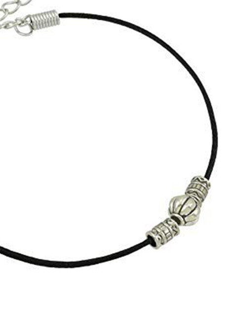 Set of 2 beaded anklets in black and silver, has an adjustable lobster clasp