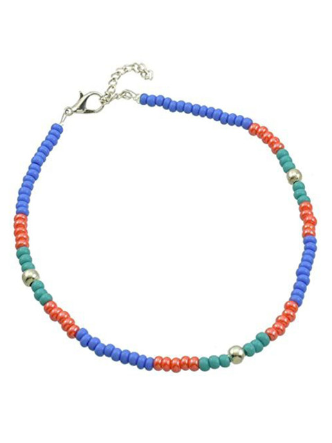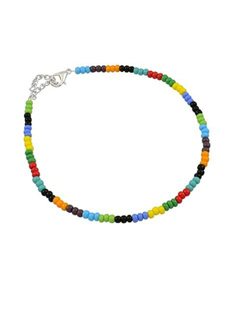 Set of 2 beaded anklets in black and silver, has an adjustable lobster clasp