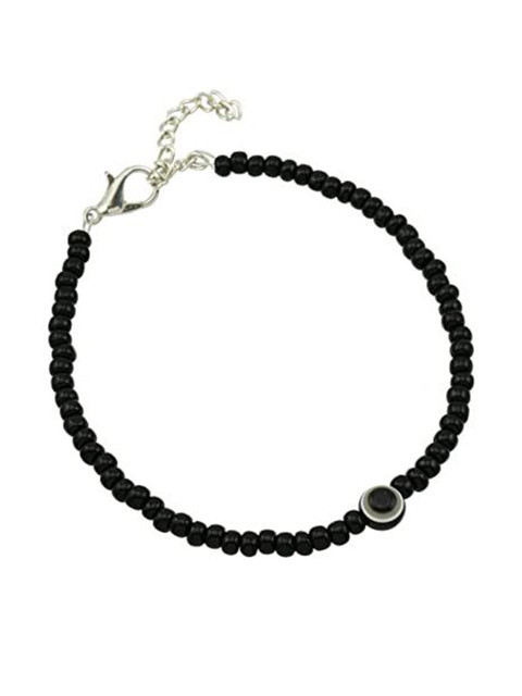 Set of 2 beaded anklets in black and silver, has an adjustable lobster clasp