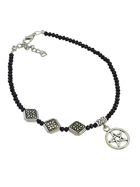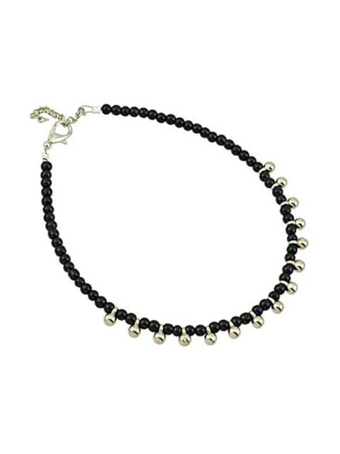 Set of 2 beaded anklets in black and silver, has an adjustable lobster clasp