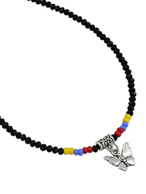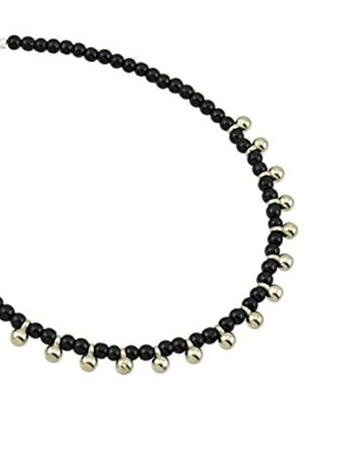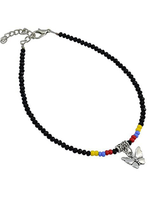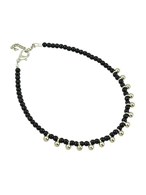 Set of 2 beaded anklets in black and silver, has an adjustable lobster clasp