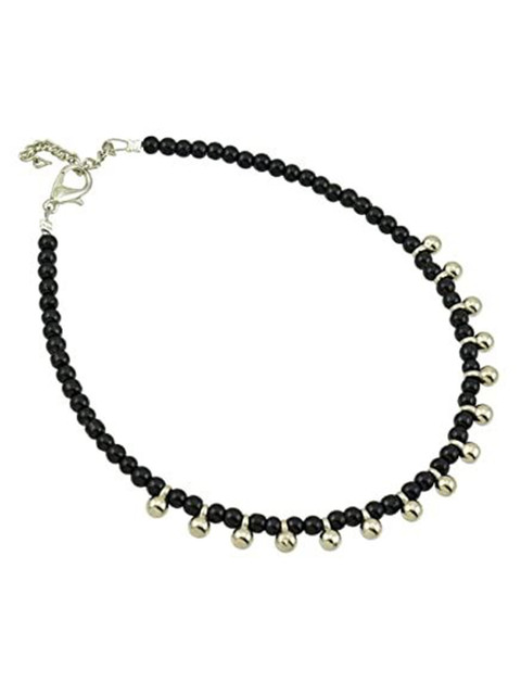 Set of 2 beaded anklets in black and silver, has an adjustable lobster clasp
