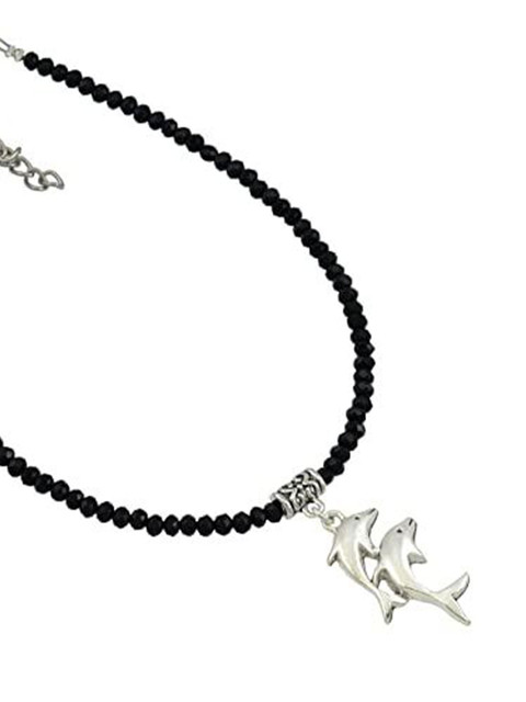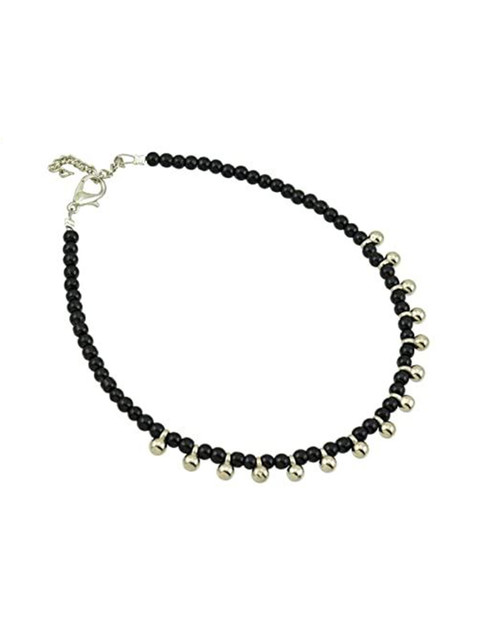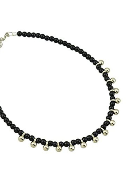 Set of 2 beaded anklets in black and silver, has an adjustable lobster clasp