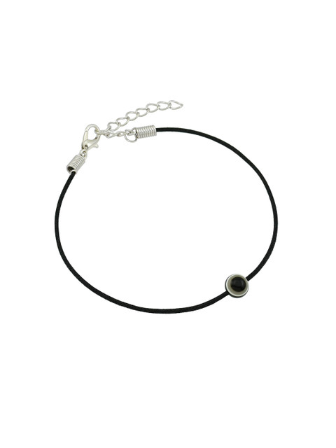 Set of 3 beaded anklets in black and silver, has an adjustable lobster clasp