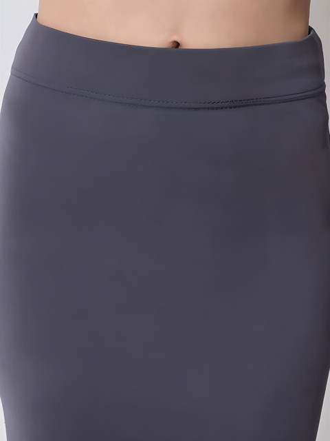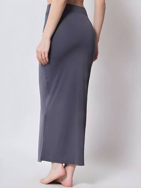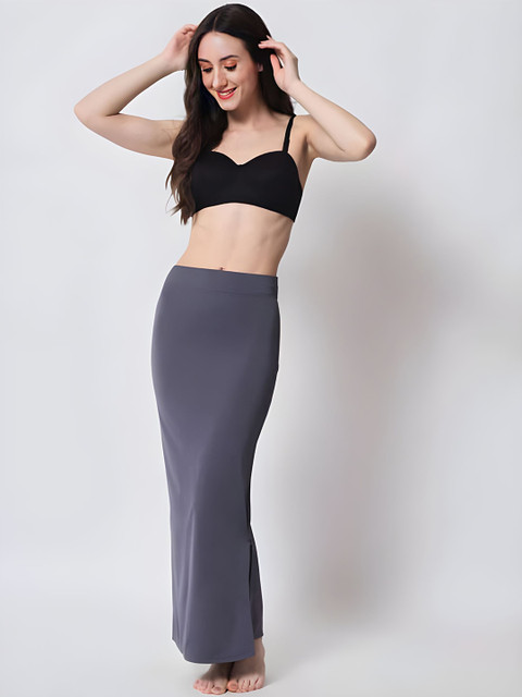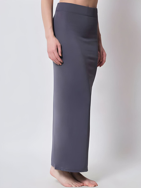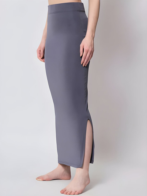Grey solid seamless saree shapewear, has an elasticated waistband with slip-on closure, a side slit and straight hem