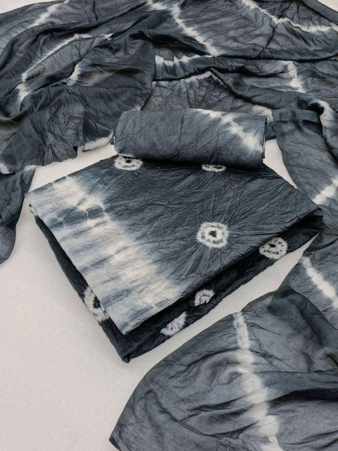 Grey and white bandhani printed kurta fabric