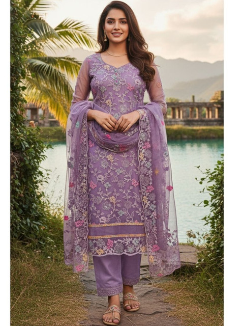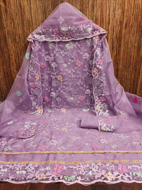Purple embroidered unstitched dress material