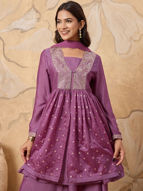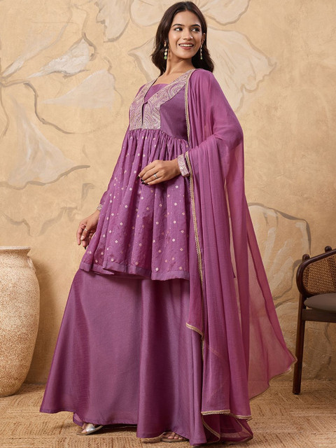 1 review for House of Pataudi Embroidered A-Line Kurta & Sharara With Dupatta