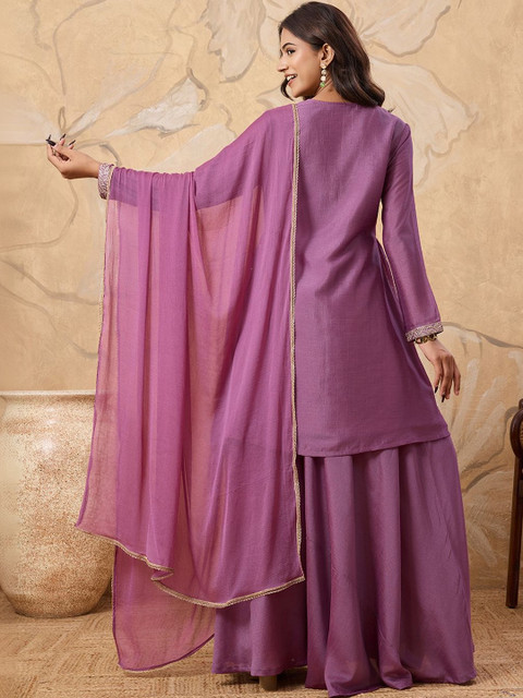 House of Pataudi Embroidered A-Line Kurta & Sharara With Dupatta
