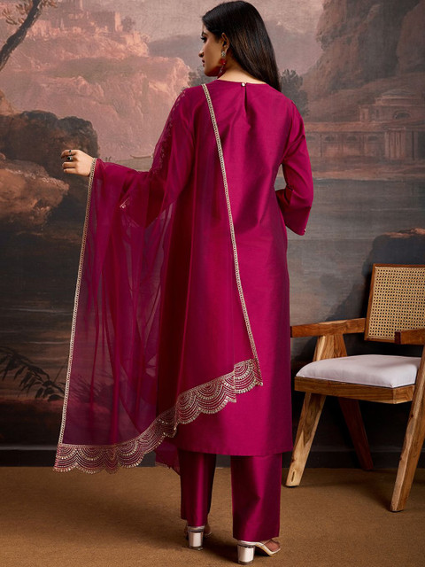 This kurta set consists of kurta, trousers and dupatta