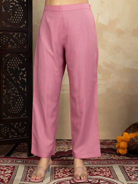 3 reviews for House of Pataudi Floral Embroidered Chanderi Cotton Straight Kurta & Trousers With Dupatta