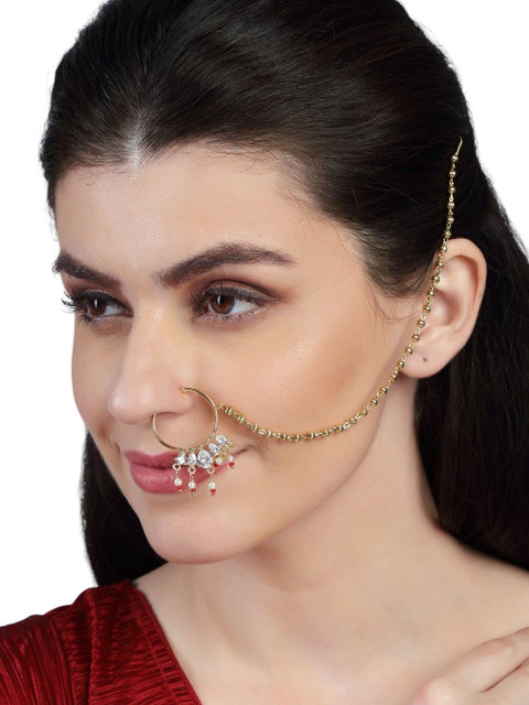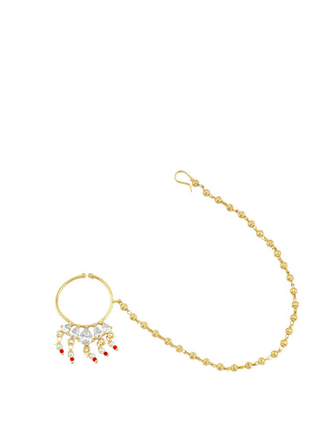 Gold-plated artificial stones and beads Studded ring clip-on closure