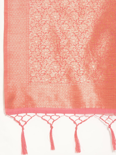 House of Pataudi Pink & Gold-Toned Ethnic Motifs Zari Saree
