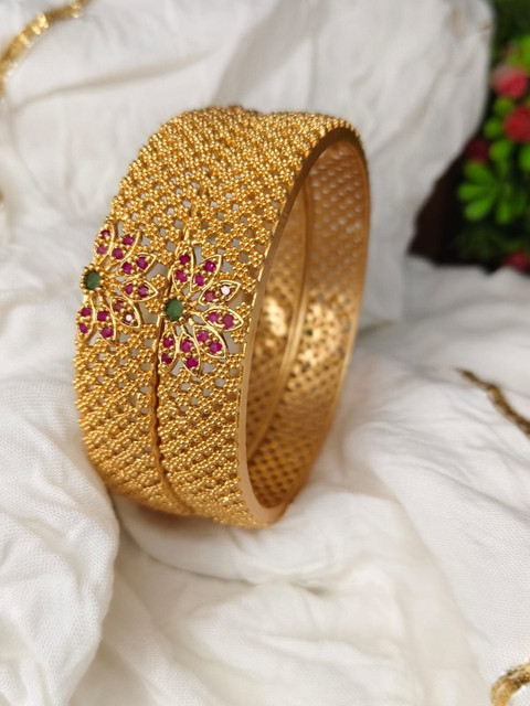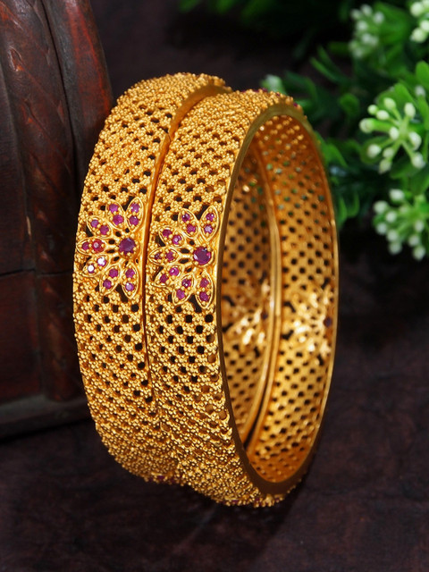 Gold-toned and pink bangles, each has american diamond studded details