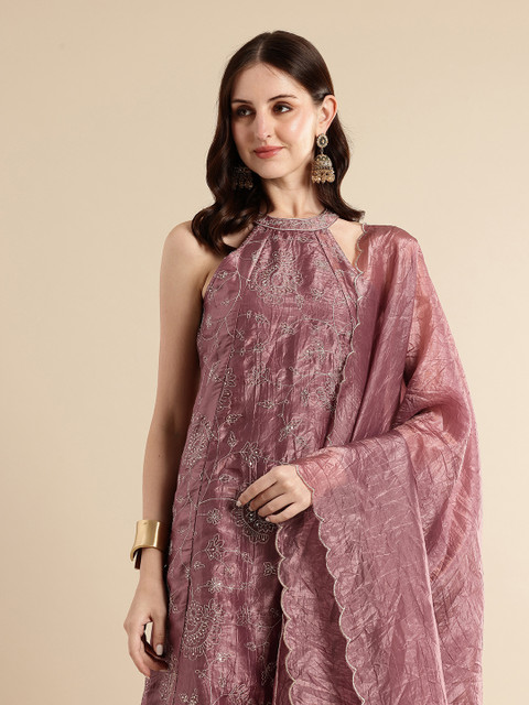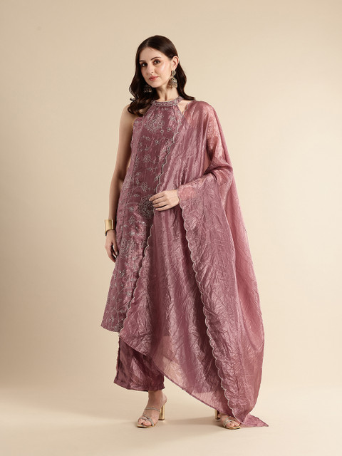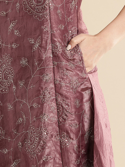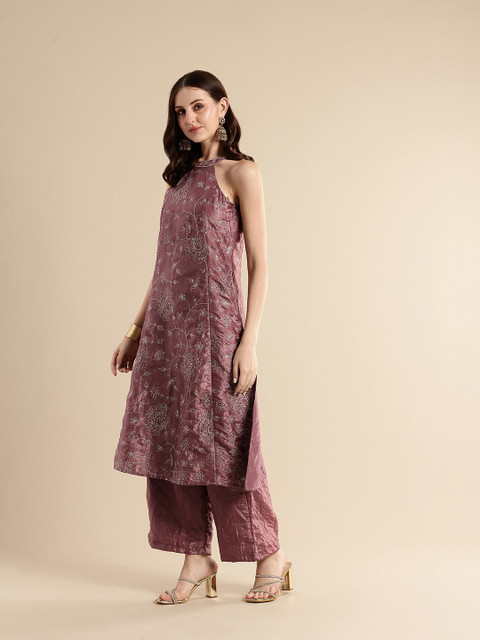 Mauve Embroidered Kurta with Palazzos & Dupatta