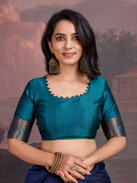 The blouse worn by the model could be for modelling purpose only, please check the image of the actual blouse piece