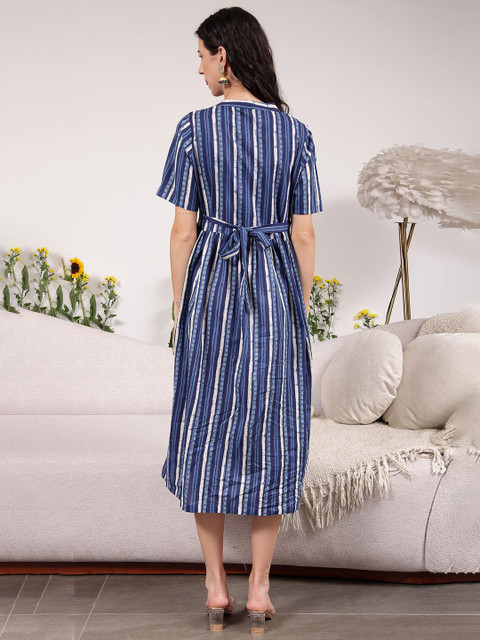 • Blue and white striped fit & flare dress