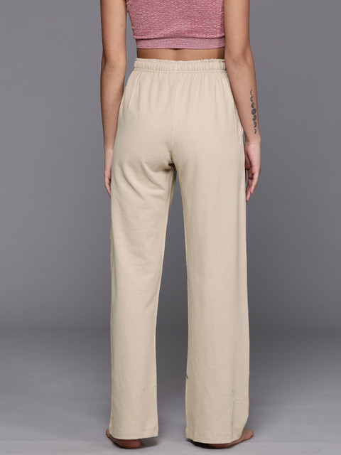- Beige solid yoga tack pants for women