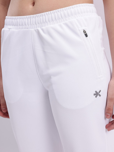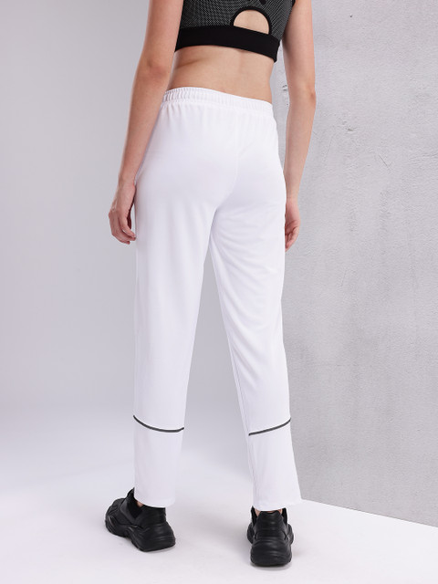 - White solid running track pants