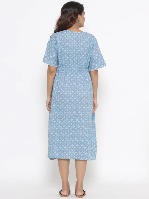- Blue and sirocco ethnic motifs print a-line dress