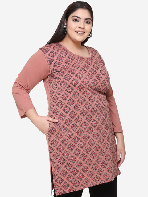 IN Love Plus Size Floral Printed Round Neck Cotton Pockets Relaxed Fit T-shirt