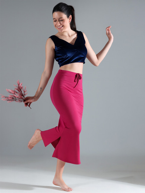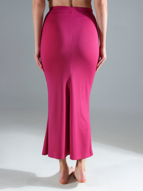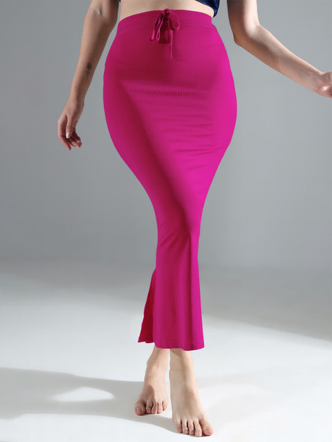 Pink solid saree shapewear, has an elasticated waistband with inner drawstring closure, seamless and a side slit