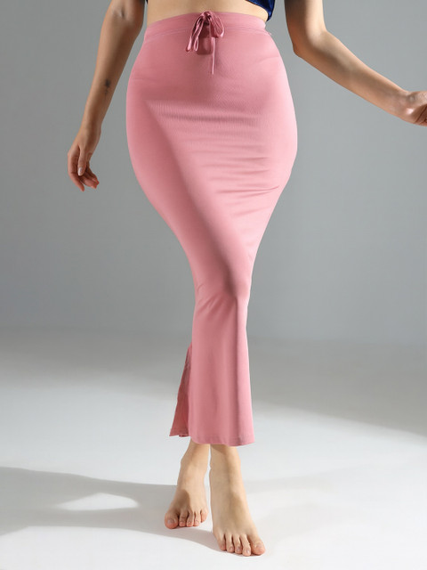 Pink solid saree shapewear, has an elasticated waistband with inner drawstring closure, seamless and a side slit