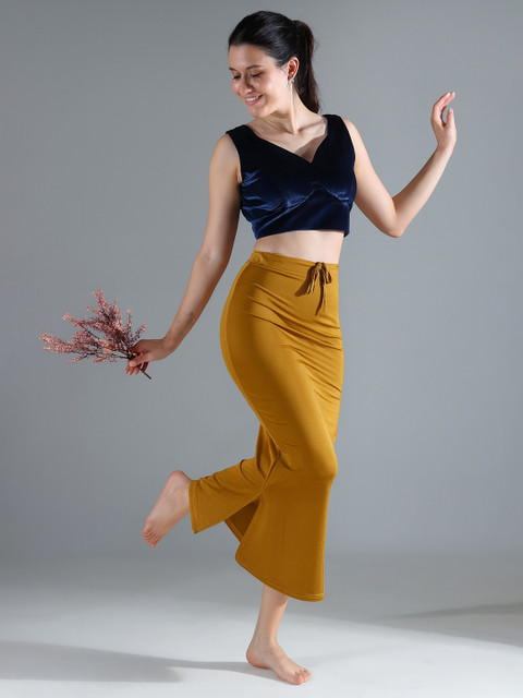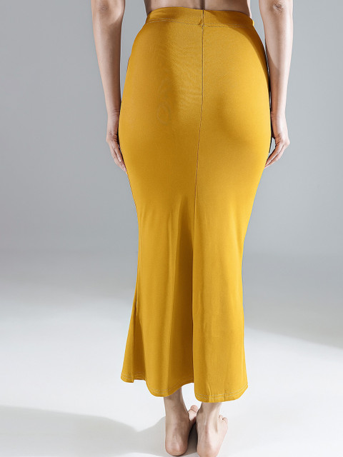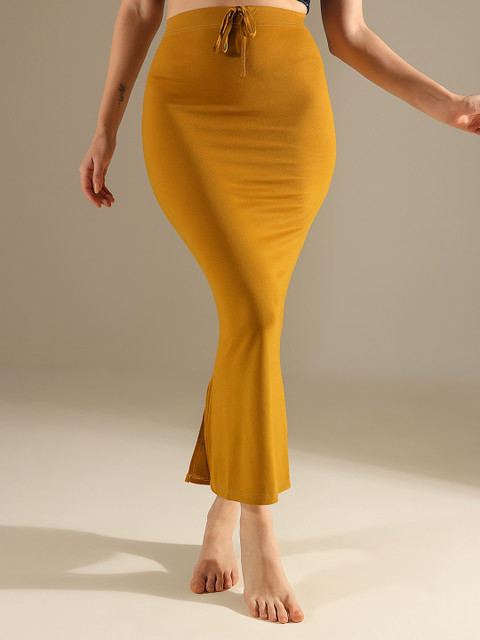 Mustard solid saree shapewear, has an elasticated waistband with inner drawstring closure, seamless and a side slit
