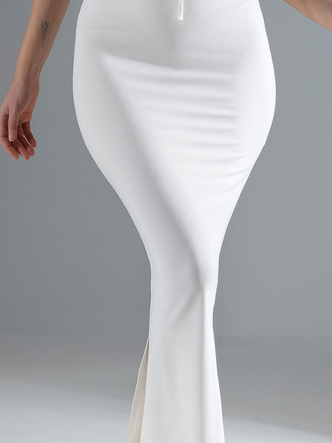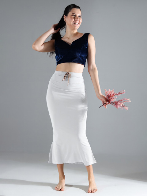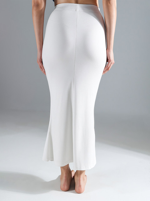 White solid saree shapewear, has an elasticated waistband with inner drawstring closure, seamless and a side slit