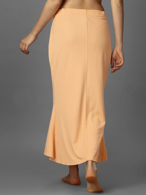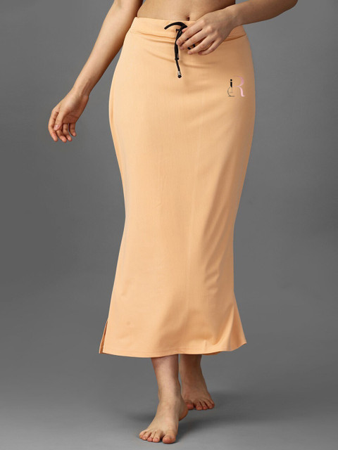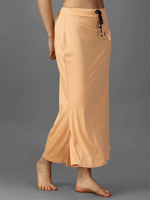 Pack of 2 solid saree shapewear in gold coloured and maroon, each has an elasticated waistband, seamless, side slit and drawstring closure