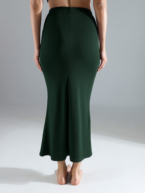 Green solid saree shapewear, has an elasticated waistband with inner drawstring closure, seamless and a side slit