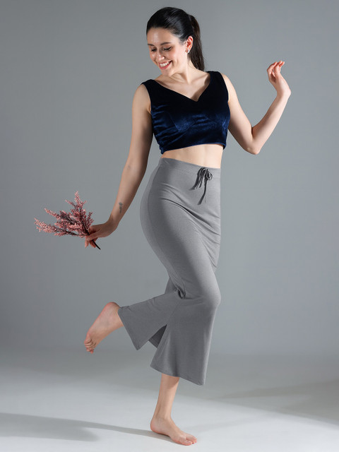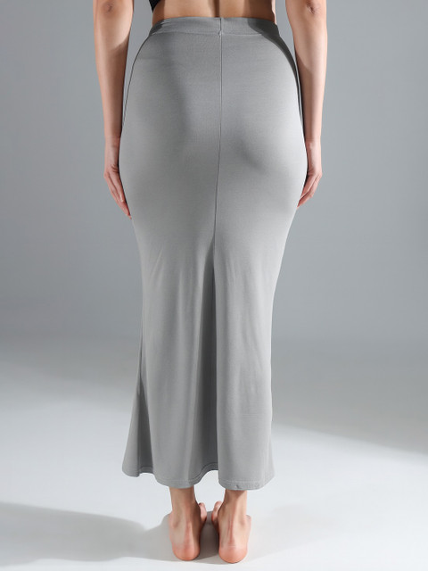 Grey solid saree shapewear, has an elasticated waistband with inner drawstring closure, seamless and a side slit