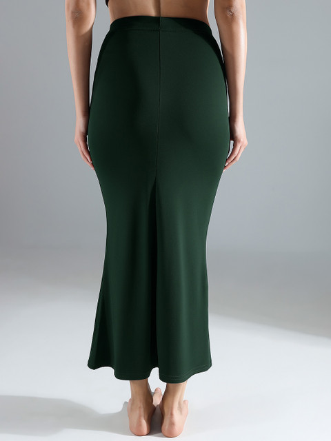 Green solid saree shapewear, has an elasticated waistband with inner drawstring closure, seamless and a side slit