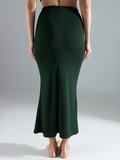 Green solid saree shapewear, has an elasticated waistband with inner drawstring closure, seamless and a side slit