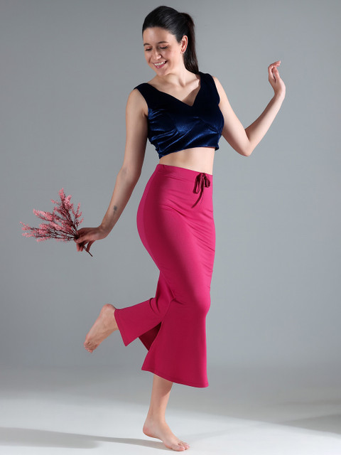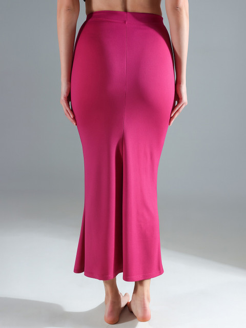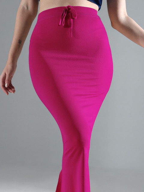 Pink solid saree shapewear, has an elasticated waistband with inner drawstring closure, seamless and a side slit