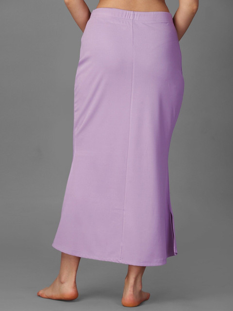 Purple solid saree shapewear, has an elasticated waistband with drawstring closure, a slit and straight hem