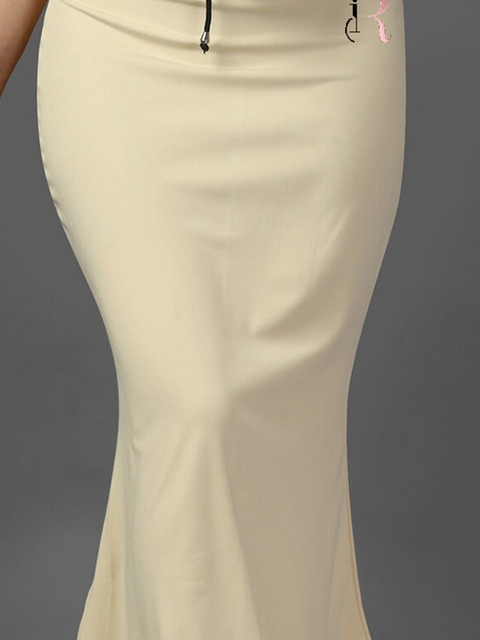 Beige coloured solid saree shapewear, has an elasticated waistband with drawstring closure, a slit and straight hem