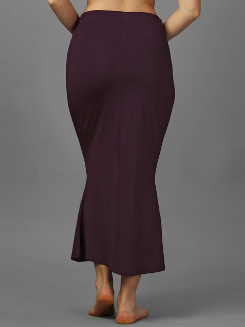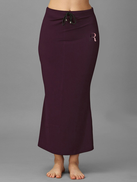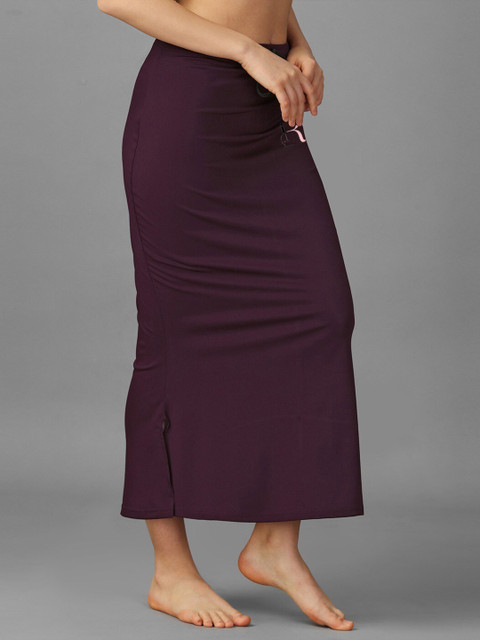 Purple solid saree shapewear, has an elasticated waistband with drawstring closure, a slit and straight hem