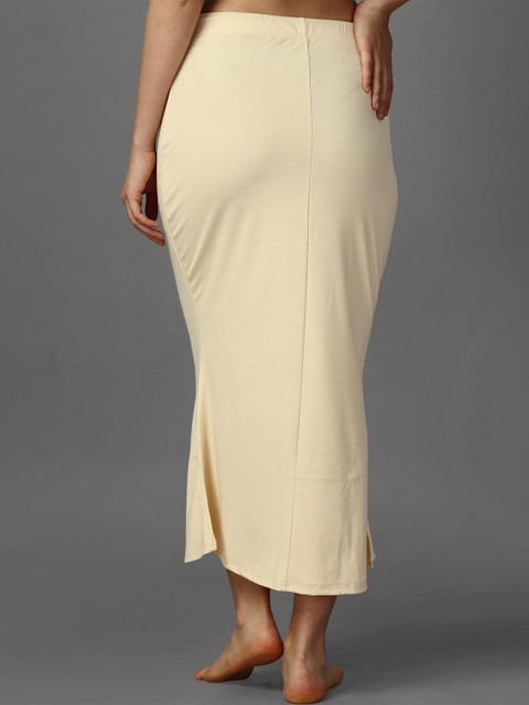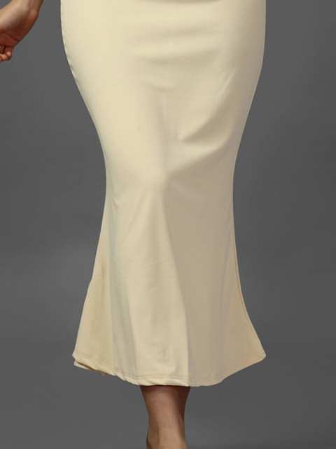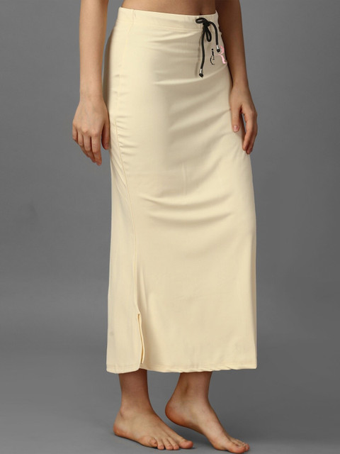 Beige coloured solid saree shapewear, has an elasticated waistband with drawstring closure, a slit and straight hem