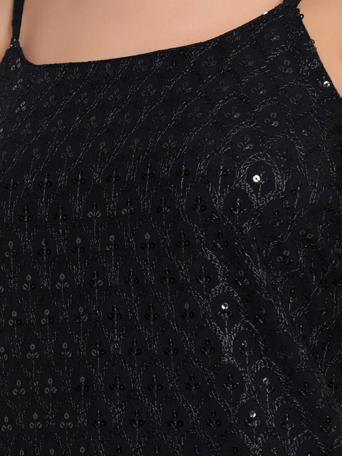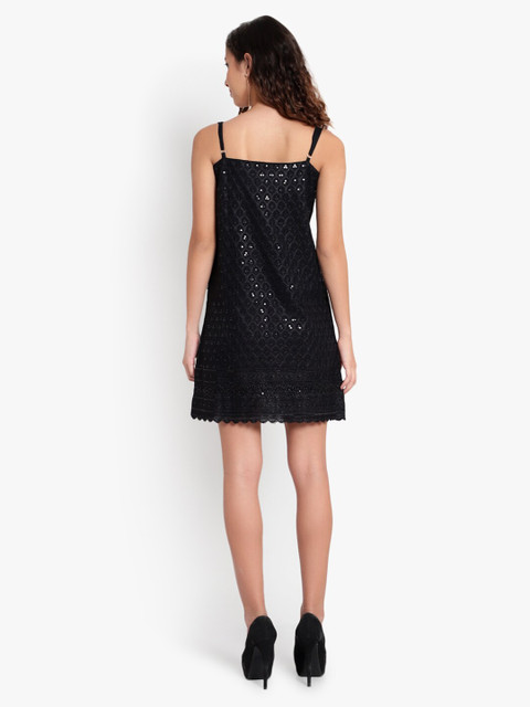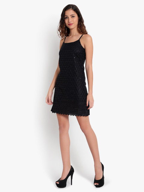 • Black self design solid sheath dress
