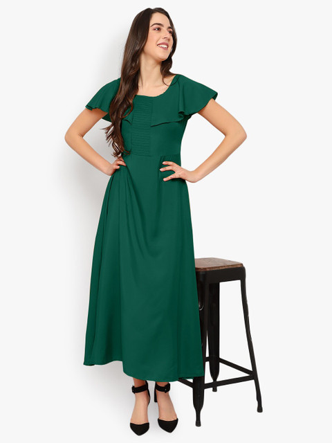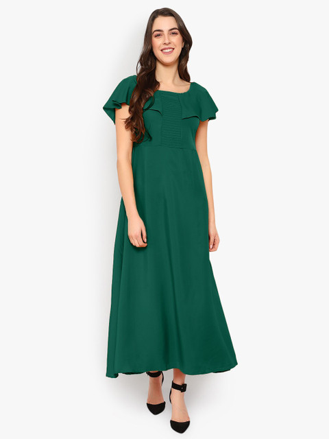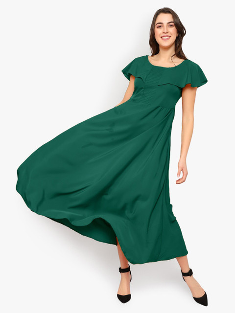 - Green solid maxi dress