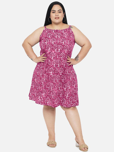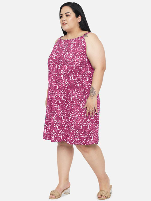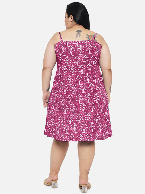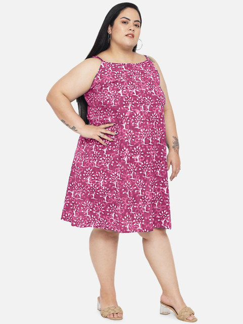 - Pink floral dyed a-line dress