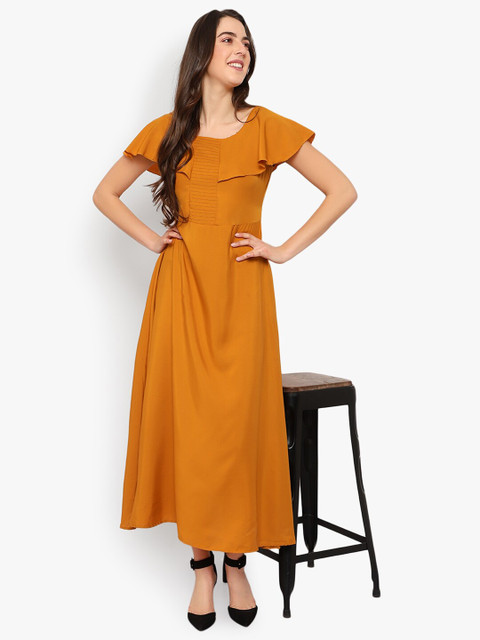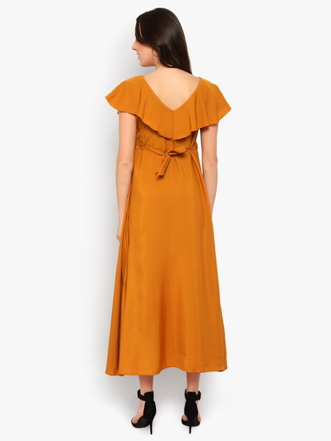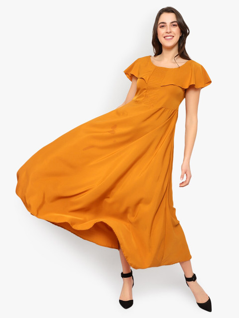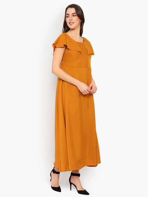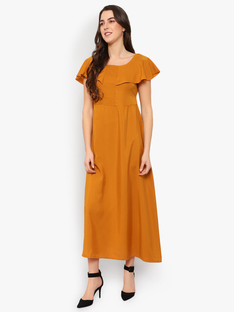 - Mustard yellow solid maxi dress