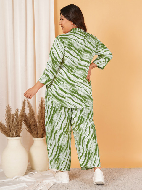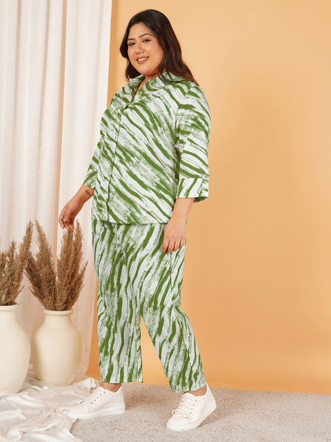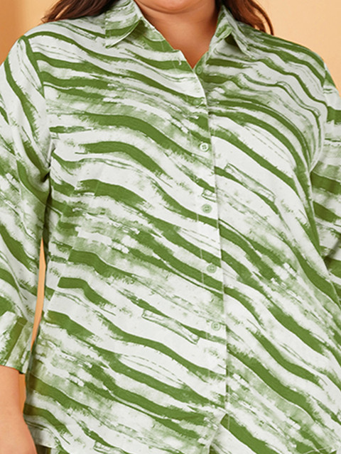 Green printed shirt, has a shirt collar neck and three-quarter sleeves