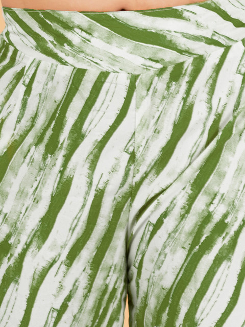 Green printed trouser, has an elasticated waistband with slip-on closure and 2 pockets
