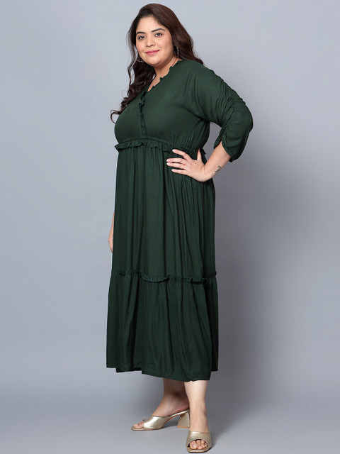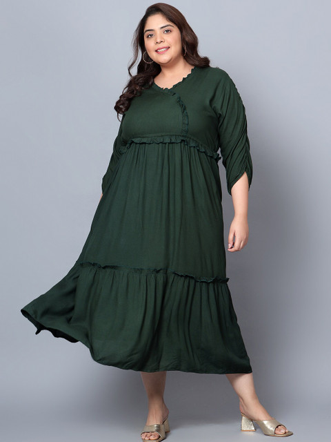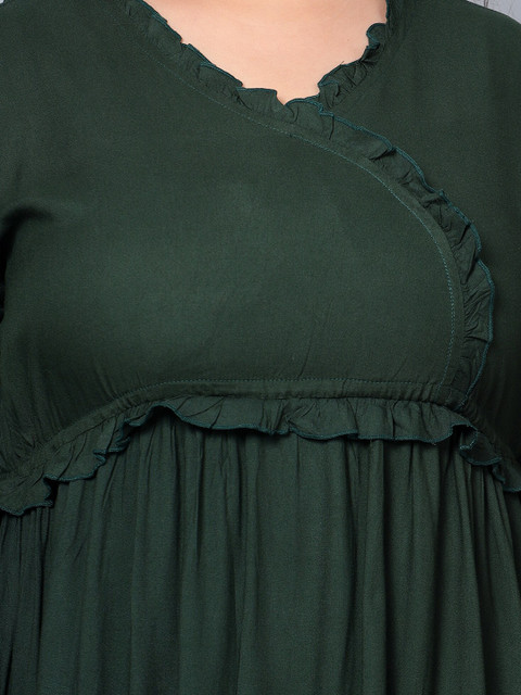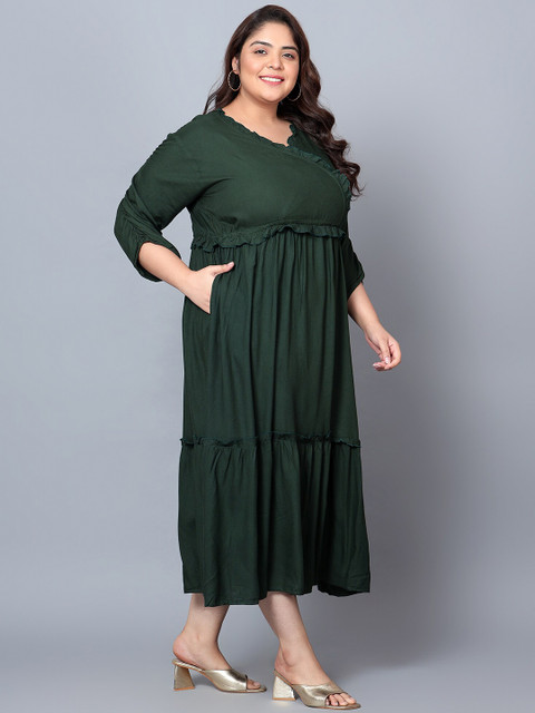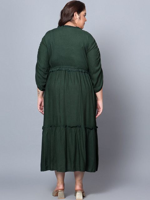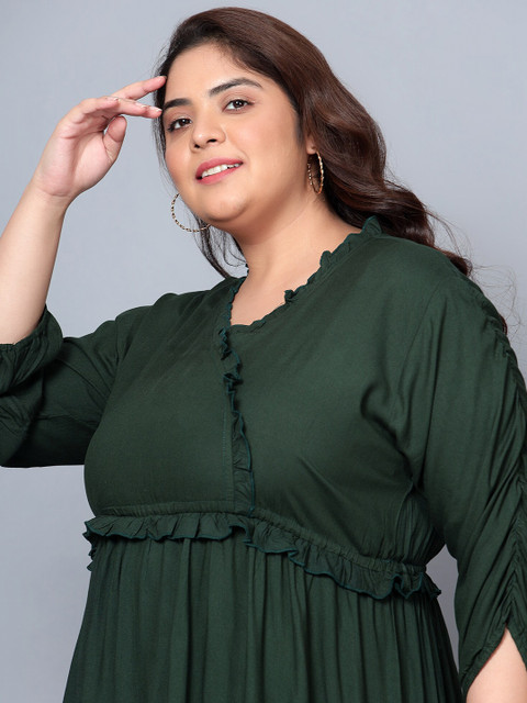 - Green solid fit & flare dress