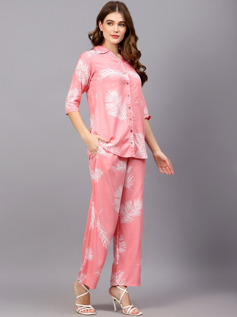 Indietoga Tropical Printed Roll-Up Sleeves Shirt With Trousers
