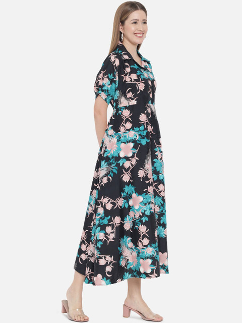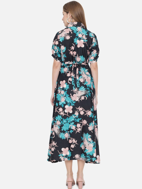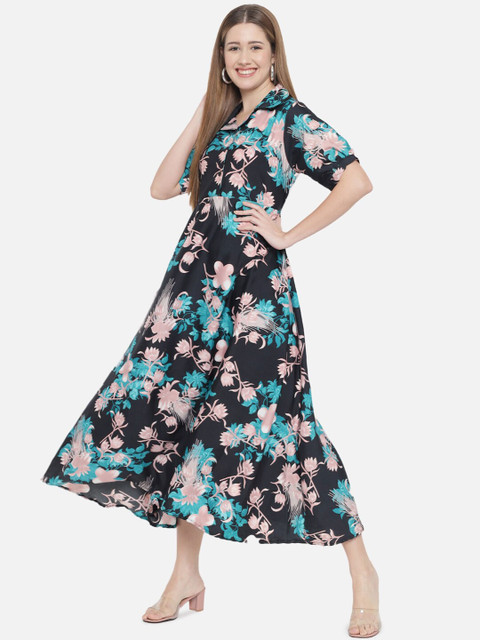 - Green floral print fit & flare dress