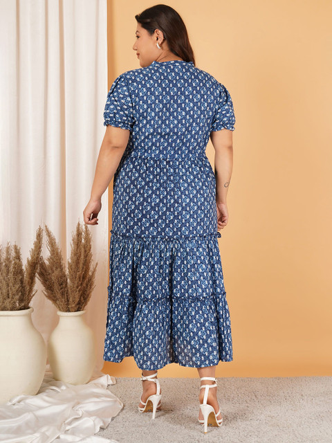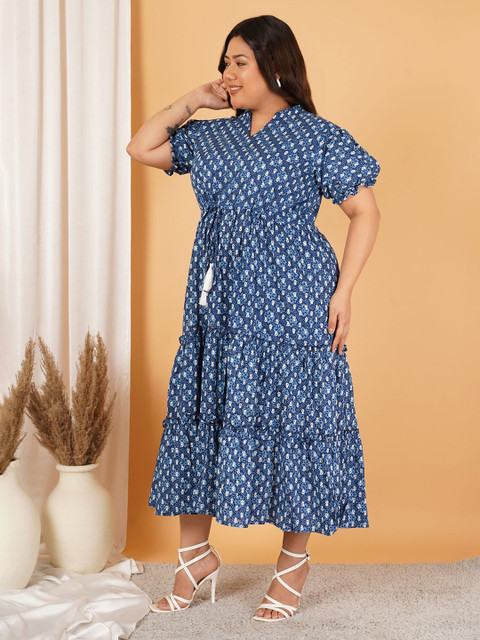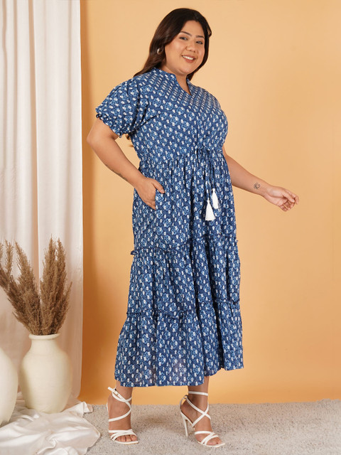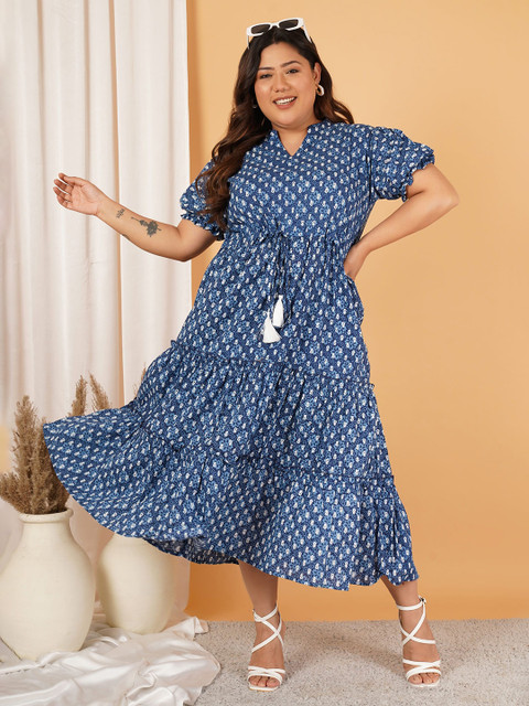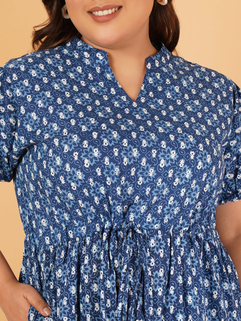 - Blue floral print fit & flare dress